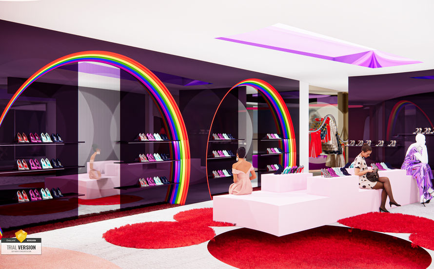 Most of the exterior design of Marni’s store is carrying classical style. But the interior is the opposite.The Interior of Marni’s store is colorful, and contemporary style. Movement and Ref lection is the main element of the showing the transfer